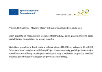 Vzhledem k tomu, že si Město Náchod prostřednictvím svých volených zástupců tyto zásady vždy uvědomovalo, podařilo se v roce 2001 zakoupit a rozšířit lesní majetek o poměrně velký lesní celek Vápenka o výměře cca 265 ha. Postupně tímto způsobem Město Náchod získalo a v současné době tak vlastní cca 810 ha lesní půdy, tedy lesní majetek se podařil více než zdvojnásobit.