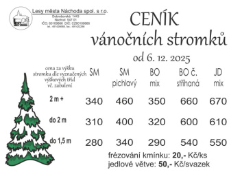Společnost Lesy města Náchoda, spol. s r.o. pořádá jako každoročně tradiční prodej vánočních stromků a vánočního kapra u Lesní správy v Náchodě.